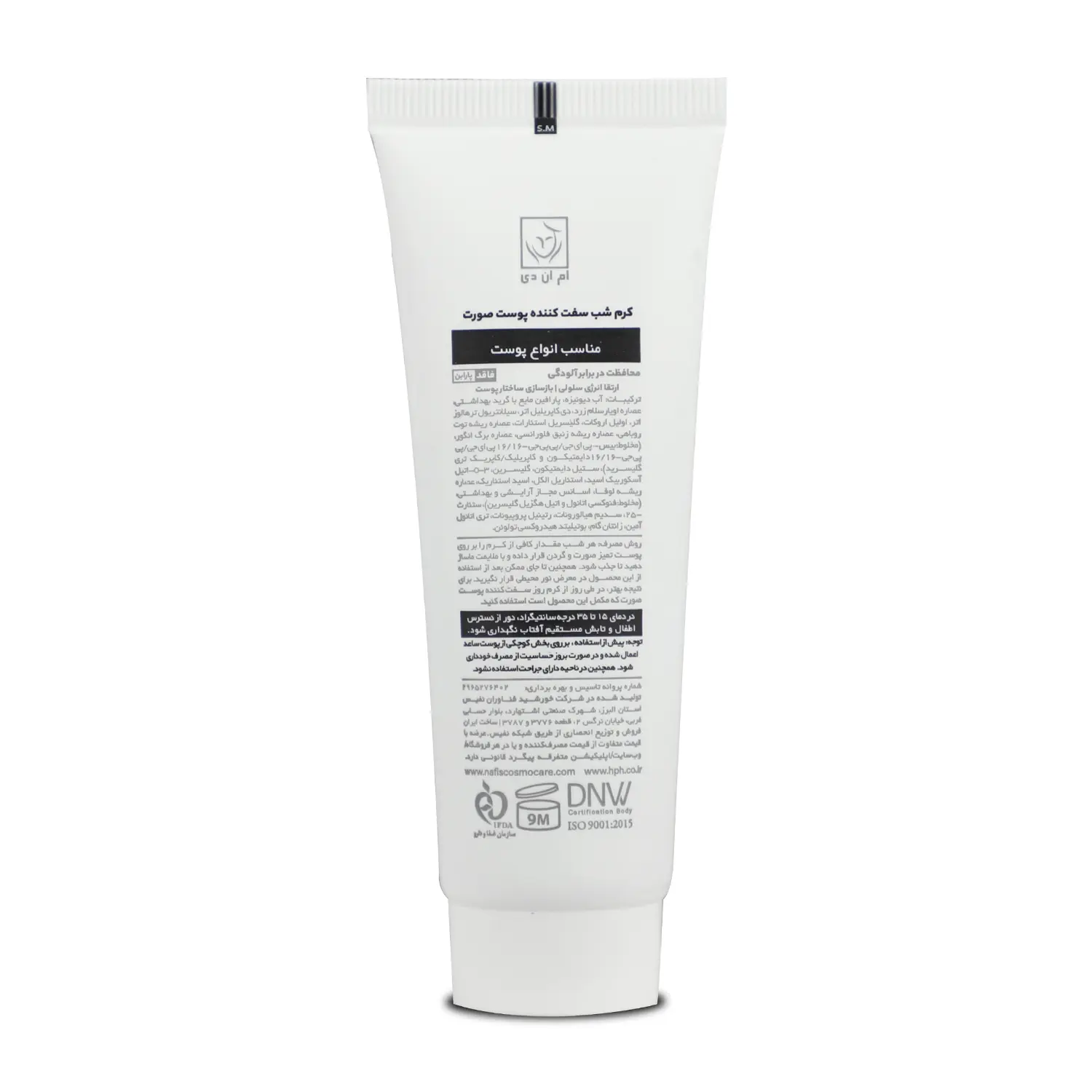 کرم شب سفتکننده پوست صورت MND به دلیل داشتن عصاره اویارسلام زرد، تولید انواع کلاژن را در پوست تحریک کرده و موجب افزایش تعداد آنها میشود. اما چون سلولهای پوست برای فرآیندهای مرتبط با پروتئینسازی نیاز به مصرف انرژی دارند از عصاره ریشه لوفا هم بهره گرفته شده تا انرژی سلولی به خوبی تامین شود و مشکلی در فرآیندهای بازسازی و بازیابی ساختارهای پوستی وجود نداشته باشد. برای دستیابی به بهترین نتیجه، از عصاره ریشه زنبق فلورانسی نیز کمک گرفته شده تا آنزیمهای تخریبکننده کلاژن و الاستین داخل پوست مهار شوند و نتوانند به این پروتئینهای ساختاری و اساسی پوست، لطمه وارد کنند. البته چون آلودگی محیطی، ذرات معلق و... در فعال شدن این آنزیمها نقش ایفا میکنند از عصاره برگ انگور هم در این محصول استفاده شده که به دلیل بهرهمندی از انواع ترکیبات آنتیاکسیدان و... از فعال شدن این آنزیمهای مخرب به ویژه در محیطهای آلوده شهرها و... جلوگیری میکند. علاوه بر عصارههای فوقالذکر، در فرمولاسیون این محصول به مشتقات ویتامینهای A و C نیز توجه شده است زیرا این ویتامینها نقش حیاتی و مهم در بازسازی و احیای ساختار پوست دارند. لازم به تاکید است که در این کرم شب، کمک به تولید ویتامین D نیز در نظر گرفته شده است؛ در حقیقت چون بخش اصلی ویتامین D بدن از تابش نور خورشید و طی روز در پوست تولید میشود، باید پوست آماده تولید این ویتامین حیاتی باشد و عصاره ریشه توت روباهی موجود در این کرم به پوست این فرصت را میدهد تا در طی شب برای تولید حداکثری ویتامین D در طول روز آماده شود. البته این عصاره نقش پُررنگ و مثبتی هم در تولید هورمونهای شادی، مانند سرتونین و ملاتونین دارد که باعث ایجاد حس نشاط و آرامش در پوست و رفع خستگی میشود.