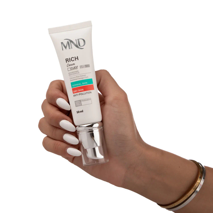 کرم روز مغذی و تقویتکننده پوست ام ان دی با فاکتور حفاظتی 15 مناسب پوست معمولی و خشک